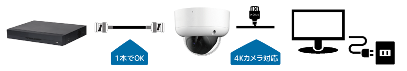 また、映像・音声・データ・電源を1本の同軸ケーブルで同時伝送できるため、
