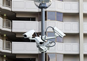 建物内外のカメラ映像を守衛室のモニターなどで監視することが出来ます。