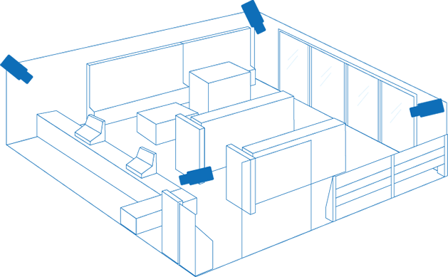 売り場や出入り口などのカメラ映像を事務室で監視することが可能です。