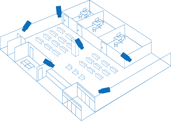 売り場や出入り口などのカメラ映像を事務室で監視することが可能です。